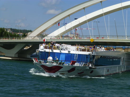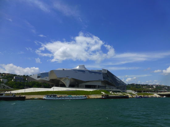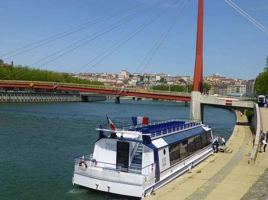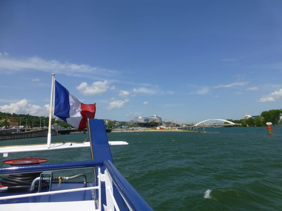 Unser Nachmittagsprogramm sieht bei herrlichem Sonnenschein eine Fahrt auf dem Ausflugsboot vor. Mit unserer Lyon-Card ist die einstündige Kreuzfahrt inklusive und wir unternehme eine wunderbare Fahrt über die Saône hinunter zum hypermodernen, neuen Stadtviertel "La Confluence" und vorbei am gleichnamigen, neuen Museumsbau. Am Zusammenfluß von Saône und Rhône schippern wir ein Stück die Rhône hinauf, begegnen riesigen Fluß-Kreuzfahrtschiffen bevor es dieselbe Strecke wieder retour geht.