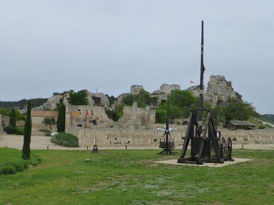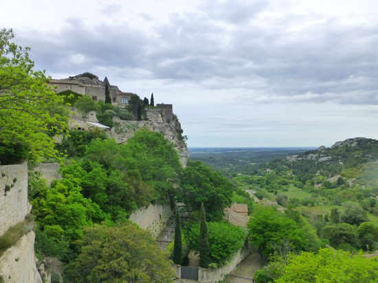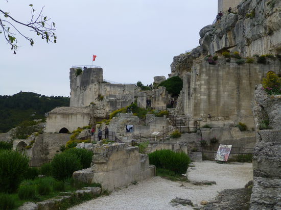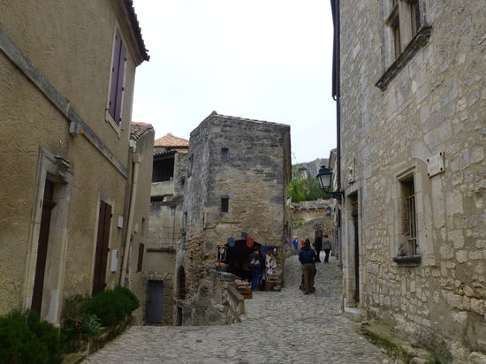 Schon die Anzahl der Parkplätze lässt Besuchermassen erahnen, aber wir können uns das pittoreske Dorf mit jeder Menge Restaurants, Souvenir- und Kunsthandwerkerläden (die Cité von Carcassonne lässt grüßen) und die imposante Burgruine in aller Ruhe anschauen. Leider beginnt es jedoch zu nieseln und die grandiose Aussicht auf die Alpilles, den Mt. St. Victoire sowie die Camargue und das Rhône-Delta ist leider etwas getrübt. Trotzdem genießen wir diesen Streifzug durch historisches Gemäuer und runden unseren Besuch noch mit einer Kaffeepause im Dorf ab.