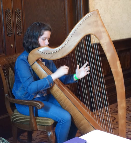 Zum Kaffee gibt es dann Harfenmusik von einem netten jungen aber sehr schüchternen Mädchen, das bereits recht virtuos auf dem Instrument zu spielen versteht.