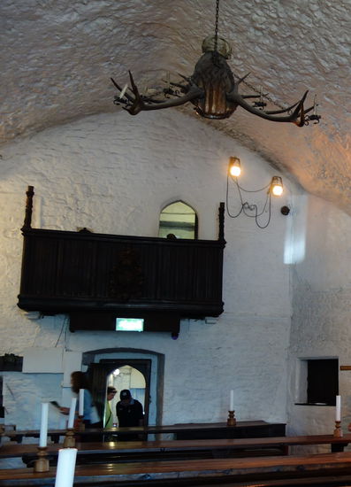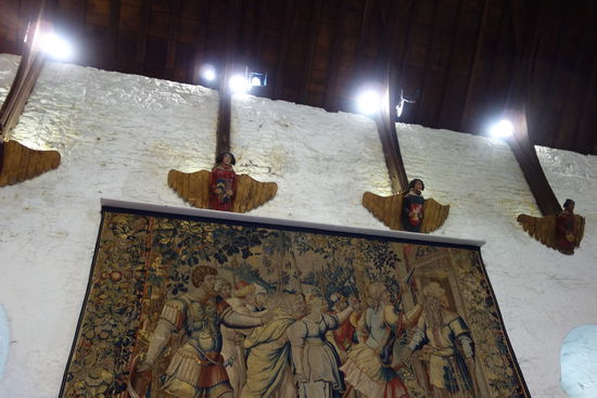 Ein gute Stunde Fahrt später stoppen wir am Bunratty-Castle (Eintritt 15.75 €). Wir werden zunächst in die erste Etage in die große Halle geführt, wo wohl auch abends das medieval banquet stattfindet und erhalten eine Führung in deutscher Sprache.