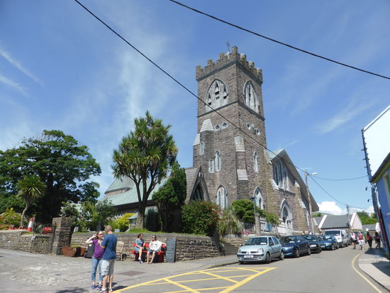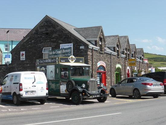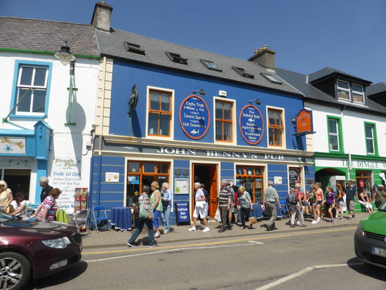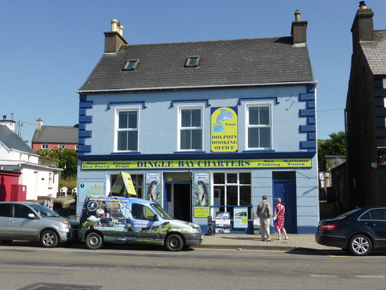 In Dingle machen wir drei zunächst mal auf einer Bank Mittagspause mit unseren Habseligkeiten, aber immerhin mit heißem Kaffee aus der Thermoskanne. Danach folgt ein kleiner Bummel durch den Ort, der inzwischen vollkommen überlaufen ist.