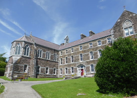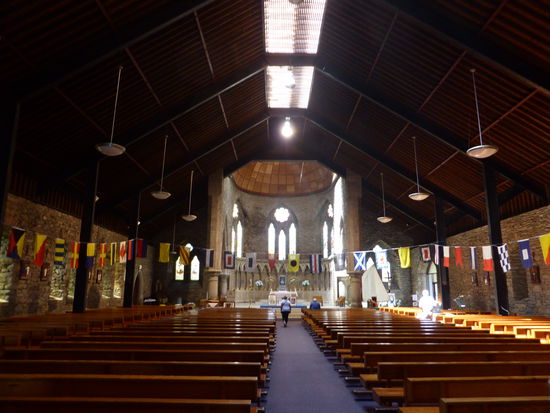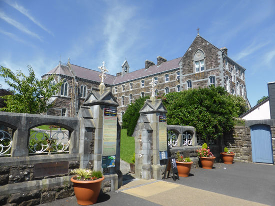 Ein paar alte Gebäude aus dem lokalen Bruchstein sind auch noch vorhanden und auch die Kirche scheint aus diesem Material erbaut zu sein. Doch das moderne Dach ist interessant. Daneben liegt ein Zentrum für irländische Spiritualität.
