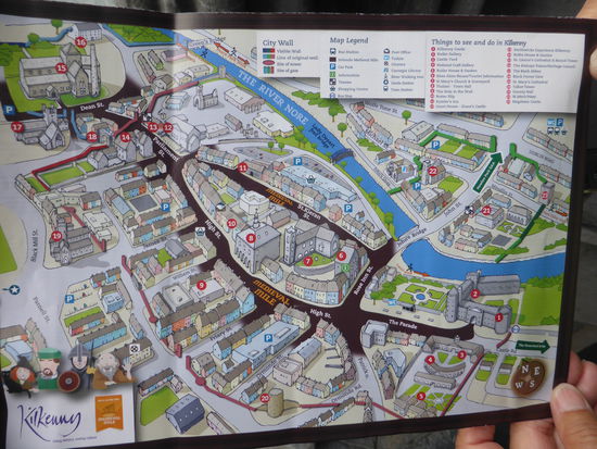 Wir beginnen den Rundgang durch die Stadt am Vorplatz zum Castle. Die High Street ist die direkte Verbindung zur St. Canice Cathedral, sie bietet aber - wie bereits im Stadtplan als 'medieval mile' ausgedruckt - eine Reihe interessanter Häuser.