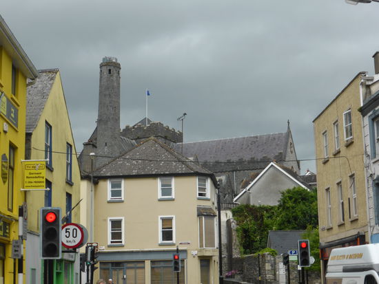 Dann ist die St Canice’s Cathedral in Blickweite, erkennbar an dem isolierten Rundturm direkt neben dem Kirchengebäude.
