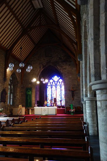 Die Black Abbey, eine Dominikanerabtei aus dem 13.Jh., verdankt ihren Namen den schwarzen Kutten der hier einst lebenden Mönche. Auch sie lohnt einen Besuch, denn die Kirche hat im Prinzip zwei Schiffe, die rechtwinklig zueinander stehen. Sowohl alte als auch mutig installierte neue Fenster lohnen die Betrachtung.