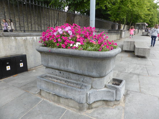 Direkt vor der Castlemauer steht ein interessanter Trog – er wurde 1902 in Auftrag gegeben und für 52£ und 5 sh angefertigt – er diente im oberen Teil – heute mit Blumen bepflanzt – Pferden und im unteren Teil Hunden als Tränke.