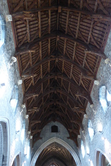 Das Hammerbalken-Gewölbe (ohne Nägel gefertigt) über dem Hauptschiff wurde 1863 aus kanadischen Mammutbaum (Sequoia) errichtet. Unter den Verzierungen der Hammerbalken finden sich der König und die Königin von Leinster, die vier Evangelisten und mehrere Mönche.