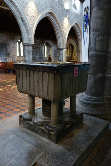Das Taufbecken aus dem 12. Jh. ist in der Form einer Jakobsmuschel gehauen, die an den Hl. Jakobus und die christliche Wallfahrt erinnert. Bekannt ist es unter dem Namen Ossory-Becken. Im Mittelalter versammelten sich Pilger um das Becken bevor sie ihre Wallfahrt nach Santiago de Compostela in Spanien antraten, die sie auch über die Jakobskirche in Dublin führte.
