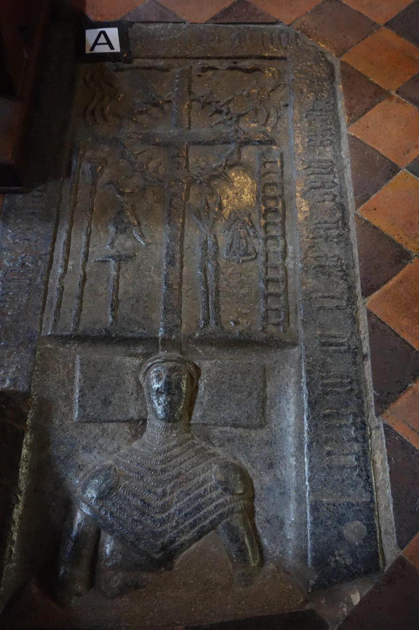 Bischof Richard Ledrede war der berühmteste Bischof von Ossory im 14. Jhdt. Noch heute ist seine Amtszeit mit 42 Jahren die längste aller Bischöfe dieser Diözese. Er brachte die berühmte Hexe von Kilkenny, Dame Alice Kyteler vor Gericht. Der Bischof verbrachte ca. 20 Jahre im Exil. Als er nach Kilkenny zurückkehrte tünchte er die schwer beschädigte Kathedrale, schmückte sie mit einem prächtigen Ostfenster und baute den Bischofspalast. Die liegende Figur zeigt Bischof Richard in vollem bischöflichen Ornat. Jedoch sind seine Füße mit den Sandalen eines Mönchs bekleidet, die auf seine frühere Zeit als Franziskaner hindeuten.