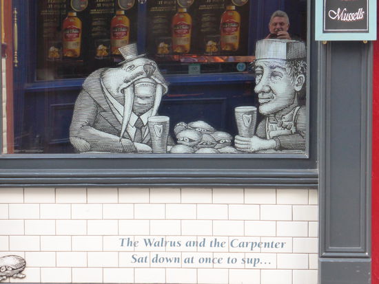 am Literaten-Pub 'Bachelor Inn' studieren wir die Sprüche, die ich schon im ersten Kapitel vorgestellt habe