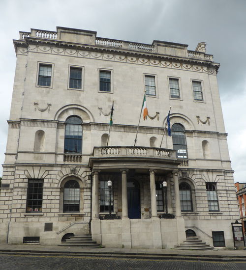 Verlässt man die Burg durch den Nordausgang, steht man vor der City Hall, dem Dubliner Rathaus. Der wuchtige, klassizistische Bau hat eine bewegte Geschichte: Um 1770 als Börse errichtet, diente das Gebäude später als Büro, in dem Rekruten angeworben wurden. Während des Aufstandes von 1798 nutzte die englische Armee das Gebäude als Kaserne und Gefängnis. 1852 schließlich kaufte die Stadtverwaltung das Haus. Das Erdgeschoss beherbergt heute eine Ausstellung zur Geschichte der Stadt.