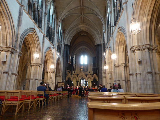 Im Inneren der großen Kirche findet gerade die Generalprobe eines großen Chores mit Flügel- und Orgelbegleitung statt und verleiht unserem Rundgang eine tolle Atmosphäre.