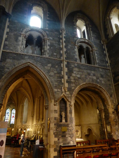 Leider ist auf dem Gelände der Kirche eine Art Kirmes, überall stehen Buden herum und verschandeln die Fotos. Einzige Überbleibsel des romanischen Kirchenbaus sind die Krypta mit ihrem Kreuzrippengewölbe, Dublins ältestes erhaltenes Bauwerk, und das Portal auf der Südseite, beide aus dem 12. Jh.