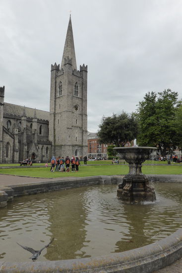 Nach Rückkehr in Dublin bietet Uta uns noch eine kleine Stadtrundfahrt mit den Teilen der Stadt, die wir am ersten Tag aus Zeitgründen haben ausfallen müssen. An der St. Patrick Cathedral ist der Teufel los, Busse über Busse. Wir umrunden die Christchurch, die über lange Zeit mit der Kathedrale ‚konkurriert’ hat, umrunden ein ganzes Stadtviertel, um am Trinity College rechts abbiegen zu können und parken dann in der Kilgate-Street in der Nähe des georgianischen Stadtviertel am Merrion Square. Wir nutzen diese Rundfahrt, um uns zu orientieren für unseren morgigen Rundgang durch Dublin, den wir gegen 9.00 Uhr wieder am zentralen Postamt beginnen.