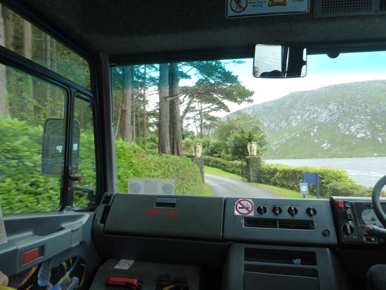 Privatautos sind auf dem Gelände des Nationalparks nicht zugelassen. daher müssen wir umsteigen auf einen Shuttlebus, um zum 3 km entfernten Glenveagh Castle zu gelangen.