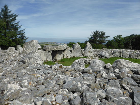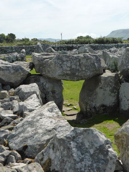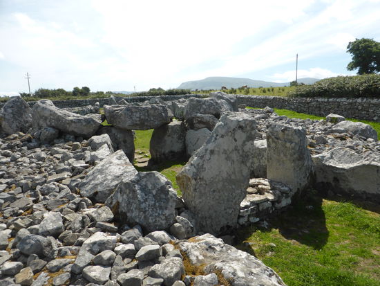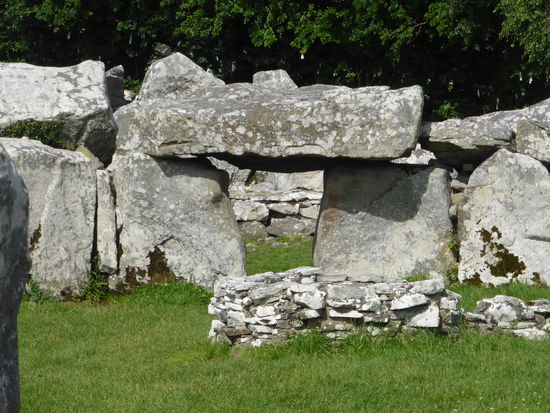 Heute beginnt alles etwas später. Frühstück um 8.00 Uhr. Abfahrt um 9.30 Uhr. Überflüssigerweise machen wir in der Nähe einen längeren Stop am Strand bei viel Wind. Erst der Halt an der steinzeitlichen Megalithanlage von Creevykeel Court Tomb versöhnt mich wieder. (Luftbild im Internet)