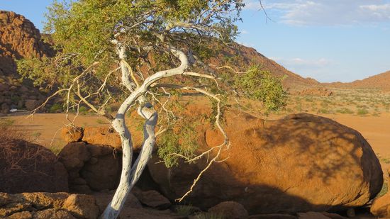 Interessant ist auch das Tal selbst mit seinen Albino-/Shephardsbäumen, Akazien, tollen Felsen etc. Die Sonne spielt mit den Formen und Farben, mit Licht und Schatten.