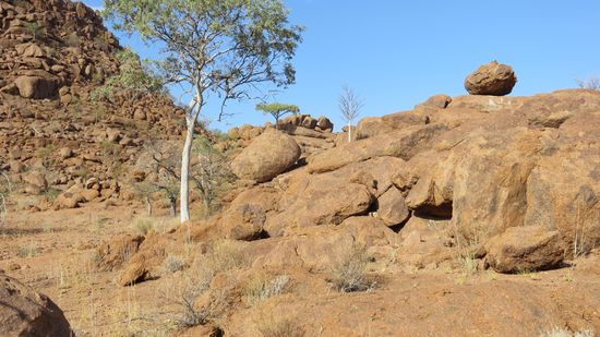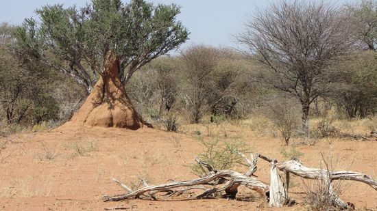 Wir nehmen kleine Umwege durch die Fransfonteinberge. Auf der Strecke jede Menge Termitenhügel, fast weiße, rotbraune und fast schwarze – je nach dem, welche Farbe die Erde in der Gegend hat.