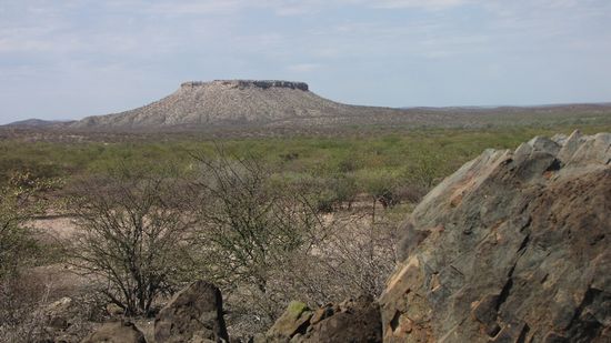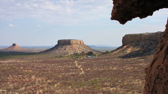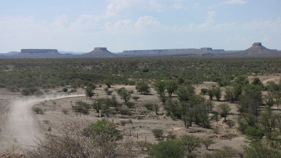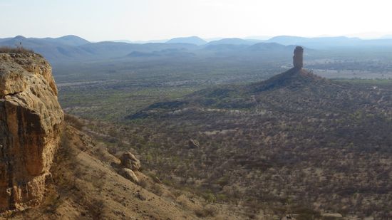 Weiter geht es über Khorixas zur Vingerklip und den Ugab-Terrassen. Unterwegs immer wieder Stops, da wir auf die Hügel beidseitig der Piste klettern wollen, um die Ausblicke genießen zu können. Bald erreichen wir „Klein-Arizona“ - die Tafelberge geben der Gegend diesen Namen.