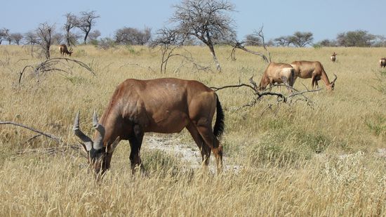 Nach dem Frühstück fahren wir bis ans Ende der Campsite und noch weiter in das Tal hinein und stören einige Antilopen (Kudus) beim Äsen.