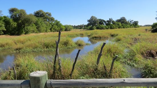Gegen 12.30h das Gate Chobe Park Mababe und nach vielem Suchen und Fragen dann auch unser Tshaa River Camp, direkt am Kwhai gelegen. -> 195km