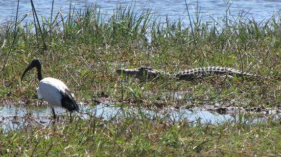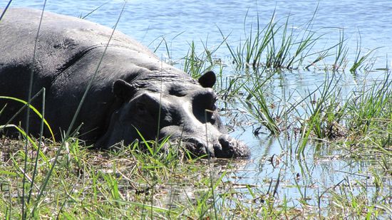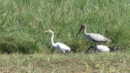 Eine elende Holperpiste mit tiefen Furchen und Löchern erwartet uns. Alles in allem war der Besuch des Moremi Parks eine Enttäuschung. Wegen des dichten Baum- und Buschbestandes ist Wildbeobachtung unterwegs kaum möglich. Nur an den Wasserlöchern, insbesondere am ‚Hippopool‘ zeigte sich viel Leben. Hippos baden im See, Antilopen äsen oder liegen im Gras, viele unterschiedliche Wasservögel genießen das Wasser – das war schon toll.