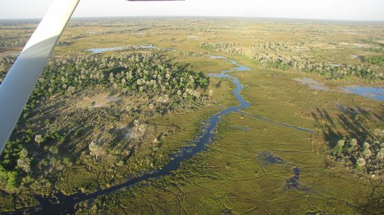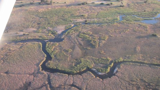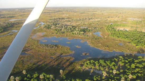 Der Flug hat unsere Erwartungen nicht ganz erfüllt. Das Delta hier bei Maun ist noch weitgehend trocken, nur an wenigen Stellen konnte man das Wasser kommen sehen. Auch die Tiere haben sich sehr zurückgehalten.