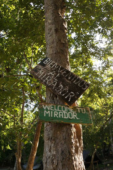 Heute standen nur die El Mirador Ruinen auf dem Programm. Das Wetter war wieder schön, also die Schuhe in die Sonne stellen, damit sie trocknen. Und bevor es zu den Ruinen geht, Wäsche waschen. Es gab einen Eimer Wasser und einen Tisch, dessen Platte aus perforiertem Metall war. Kleidung nass machen, Waschpulver drauf und dann über die Platte reiben.