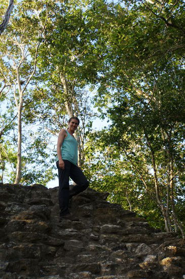 Nach dem Frühsrück ging es als erstes zu einer Pyramide neben dem Camp. Da sie nicht ausgegraben und restauriert wurde, sieht sie aus wie ein Hügel mit Bäumen drauf. Von oben hatte man eine gute Sicht über den ganzen Wald und konnte sogar die Hügel in der Ferne sehen, die El Mirador sind.