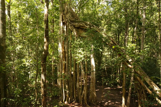 Teilweise sind wir auf einem Weg gelaufen, der ein bis zwei Meter breit war. Teilweise nur auf einem Trampelpfad, dann war auch das Gestrüpp sehr tiefhängend. Manchmal war der Weg in so einem schlechten Zustand, dass ein Abstecher mit Hilfe der Machete in die Botanik nötig war. An einigen Stellen sah der Wald auf den ersten Blick, wie ein Mischwald bei uns aus.