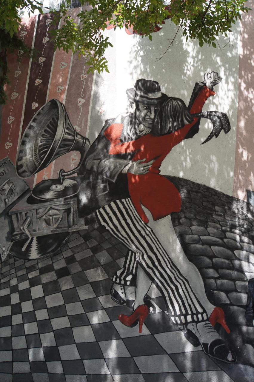 Am nächsten Tag beschloss ich, wieder mit den öffentlichen Verkehrsmittel zu fahren statt zu laufen. Als erstes wollte ich ins Tangomuseum. Aber ich konnte es nicht finden. In der Straße, wo es laut Internet war, war es nicht. Ich habe dann in einem Hotel nachgefragt, der hat mich zwei Straßen weiter geschickt, aber auch dort kein Tangomuseum. Ich habe dann ein anderes Museum entdeckt und dann nochmal dort nachgefragt, die meinten, das Museum wäre in einem ganz anderen Stadtteil. Also habe ich es aufgegeben und bin zum Wochenendmarkt von San Telmo geschlendert. Dort kann man Kunsthandwerk, Antiquitäten, Schnick-Schnack und Ramsch kaufen. Aber am Besten hat mir das alte Pärchen gefallen, dass für die Besucher Tango getanzt hat. Es war kein spektakulärer Tangotanz mit besonderen Figuren, eigentlich haben sie nur die ganz einfachen Tangoschritte vorgeführt. Aber die beiden waren so süß und herzergreifend zusammen!