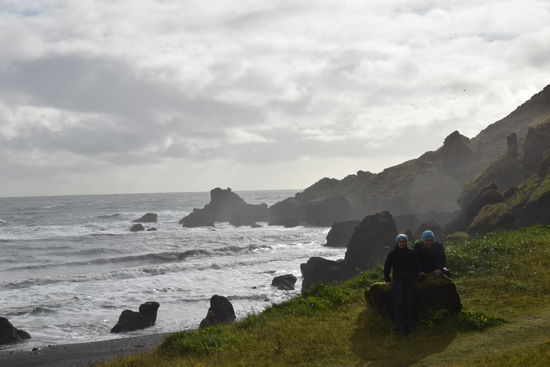 Vik kannten wir bereits von unserer großen Islandreise 2008. Dort haben uns die schwarzen Strände so faziniert, dass wir wiederkommen wollten. Wieder nahmen wir den Bus. Der bretterte trotz Sturm ganz schön durch die Gegend. Jedes Auto wurde überholt. In Vik sahen wir auch warum. Dort war er wohl an der Raststätte zum Kuchen essen verabredet und er konnte seine gewonnene Zeit gut nutzen.