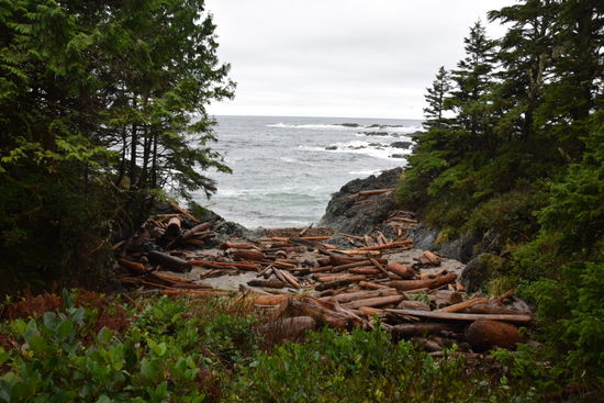 Am nächsten Tag gings weiter Richtung Tofino. Auf dem Weg dorthin wurde der Regen immer schlimmer. Also wenn sich in Hamburg nochmal jemand über den Regen beschwert, sollte er mal hierhin fahren. Von Felsen prasselten kleine Wassefälle direkt auf die Straße. Auf der Straße selbst gabs wirklich riesen Pfützen. Anhalten konnte man auch nicht wirklich, da es hier nichts gab. Keine Tankstelle, kein Restaurant keinen Ort. Natur pur! Zum Glück bin ich nicht gefahren und konnte es mir auf dem Beifahrersitz gemütlich machen. Ich fands total spannend, durcn die kanadische Wildnis zu fahren. Rahan war glaub ich ein bisschen genervt. Ich stellte mir vor wir Bären oder Pumas am Straßenrand auftauchen könnten und Rahan musste mit dem Regenwetter kämpfen. Wie gerufen lockerte die Wolkendecke auf und die Sonne kam raus. Wir stoppten am Long Beach für einen Spaziergang und fanden später einen traumhaften Campingplatz am McKenzie Beach. Dort zelteten wir im Wald mit Meeresblick. Wir machten Lagerfeuer und hatten einen wunderschönen Sonnenuntergang. Es war so herrlich, dass wir den Mietwagen und Campingplatz verlängerten. Wir besuchten noch den gemütlichen Surferort Tofino.