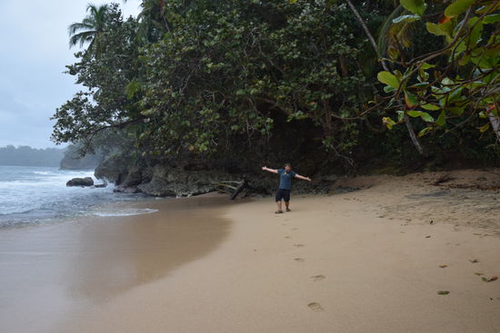 Nach Cahuita gings weiter nach Puerto Viejo oder besser gesagt an den Playa Chiquita. Wie die meisten Orte ist Puerto Viejo sehr touristisch und ich wollte etwas außerhalb wohnen. Also mieteten wir uns eine Hüttenhälfte im Dschungel. Wir liehen uns auch gleich zwei Fahrräder und radelten los. Und wer fuhr uns gleich über den Weg? Nikki! Wir aßen Mittag zusammen und später trafen wir auch noch Sierra und ihre Mutter. In der Bikinibar tranken wir Cocktails zusammen und hatten einen lustigen Abend. Cocktails, Karibik und nette Menschen, so kann man es sich gut gehen lassen. Mit Rahan erkundete ich tagsüber die Strände. Das Wasser hier ist so warm, wie in der Badewanne. Man konnte ewig im Wasser planschen. Mit dem Schnorcheln hatte ich leider nicht so ein Glück. Ich lieh einen und der war defekt und zog Wasser. Den Vermieter interessierte das aber nicht so wirklich. Außerdem bin ich jetzt ganz schön verwöhnt von Hawaii. Es gab hier zwar Fische, aber die wirkten doch ein bisschen farblos. Ich badete lieber oder lag einfach am Strand und beobachtete Faultiere. Unsere Unterkunft war wirklich nur was für Menschen, die Natur pur lieben. Alles war offen und nur ein Moskitonetz schützte einen vor den Insekten. Natürlich gab es auch ein Dach, aber eben keine richtigen Wände. Ich wurde etwas nervös, als ein riesiger Falter durch unser Schlafzimmer flog. Doch zum Glück wohnten die Geckos unter der Lampe und diese verspeisten die Falter. Außerdem wurde man jeden Morgen von einer Horde Brüllaffen geweckt. Die sind so knuffig, aber wenn man die hört, denkt man Trex steht gleich auf der Matte. Ich fands total spannend in der Natur zu übernachten. Zum Schluss setzten auch heftige Regenfälle ein und wir machten uns es so richtig gemütlich in unserer Dschungelunterkunft.