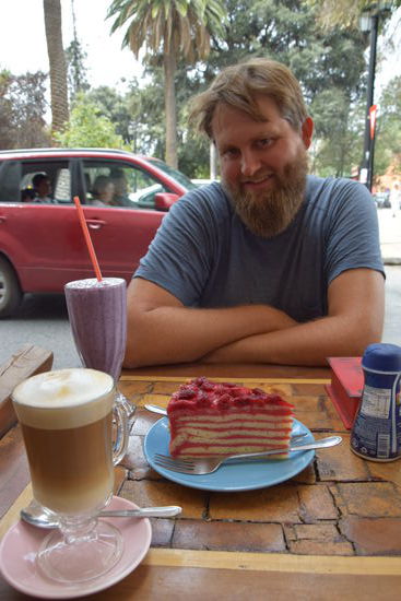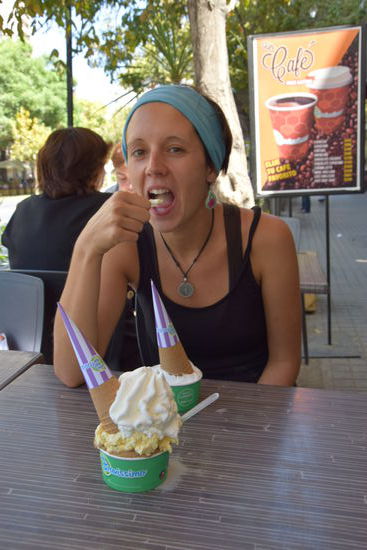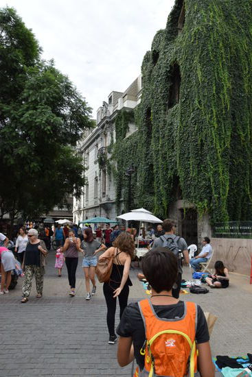 In Santiago de Chile ließen wir es uns so richtig gut gehen. Rahan hat ein Hotelschnäppchen gemacht und wir übernachteten in einer kleinen sehr modernen Suite. Außerdem probierten wir alle möglichen Leckereien und das, obwohl es in Chile nicht mehr ganz so einfach ist vegetarisches Essen zu finden. Die Chilenen lieben Fleisch. Wir probierten Chorillana, das ist eigentlich ein Pommesgericht mit Fleisch, wir fanden aber eine köstliche vegetarische Variante. Dann probierten wir ein Gericht names "Tabla", es bestand aus angebratenem Gemüse mit Dips. Das beste war aber ein kleiner gemütlicher vegetarischer Imbiss mit Burgern. Das einzige was wirklich eklig war, war das chilenische Nationalgetränk "MOTE CON HUESILLOS". Wir bestellten es an einem kleinen Straßenstand und die Chilenen schauten uns gespannt an. Ich kostete, ließ mir nichts anmerken, bedankte mich und wir verschwanden schnell. Wir wollten schließlich niemanden beleidigen. Die Leute lieben dieses Getränk. Es handelt sich um eine dunkle total süße Flüssigkeit in der ein eingelegter Pfirsich schwimmt. Unten befindet sich geschälter Weizen, den man herauslöffeln kann. Es schmeckt so süß und merkwürdig. Da hat Piscosour, der bekannteste Cocktail Chiles, viel köstlicher geschmeckt. Diesen leckeren Cocktail gibt es überall. Allerdings sind sich Peru und Chile nicht ganz einig, wer denn nun dieses Getränk erfunden hat. Neben den ganzen Köstlichkeiten, ist die Stadt auch einfach super. Es ist hier so wuselig und es sind so viele Menschen auf den Straßen. Am krassesten ist die U-Bahn. Man ist hier eingezwängt, wie in einer Sardinenbüchse und man muss erstmal anstehen, bevor man überhaupt in die Bahn einsteigen kann. Trotzdem hat die Stadt so viele gemütliche Ecken. Es gibt einige große Parks zum Entspannen und ruhigere Viertel. Am Wochenende gibt es Flohmärkte und kleine Kunstsmärkte. Der Flohmarkt war wirklich der Hit. Hier konnte man alles kaufen. Es gab Straßenstände mit Säften und Essen. Dann gab es einen Teil der genauso war, wie man sich halt einen Flohmarkt vorstellt. Am lustigsten war aber der Möbel verkauft. Die Chilenen kaufen hier in großen Lagerhallen oder an Straßenständen ihre Möbel. So standen überall Sofas und Küchen auf dem Bürgersteig herum. Hatte sich ein Kunde für ein Möbelstück entschieden, wurde es mit riesen Sackkarren durch das ganze Flohmarktgewimmel abtransportiert. Manchmal wurden ganze Wohnungseinrichtungen von nur zwei Männern transportiert. Das ist doch echt mal viel entspannter, als bei IKEA.