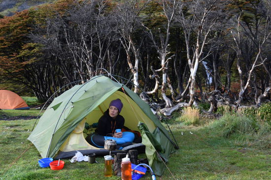 Ushuaia ist wirklich schön zwischen den Bergen gelegen, aber die Stadt an sich interessierte uns eher weniger. Wir erledigten unsere Einkäufe, schlenderten durch die Innenstadt, aber die Natur um Ushuaia herum gefiel uns viel besser. Zum Glück war Rahan auch von der zweitägigen Tour "Paso de Oveja" begeistert und er konnte das Wandern wieder richtig gut genießen. Das Wetter war toll und der Weg nicht zu schwer. Wir wanderten durch ein Bergtal, durch Wälder und an Bächen vorbei. Außerdem waren wir ganz allein. Es gab nur eine kurze anstrengende Passage. Dort hieß es wieder über Bäume kraxeln. Wie beim letzten Wanderweg gab es auch hier ein dickes Biberproblem. Irgendjemand hatte mal die tolle Idee, Biber zur Pelzgewinnung nach Feuerland zu bringen. Die Pelze kamen aus der Mode, aber die kanadischen Biber blieben. Man sieht, dass sie hier einfach nicht hingehören. Sie vermehren sich stark und holzen alles ab. Es sieht aus wie auf einem Schlachtfeld und das Wandern macht so auch keinen Spaß. Zum Glück wurde der Weg meistens freigesägt oder geräumt. Eine Nacht verbrachten wir an einem blaugrünem Bergsee. Wir beide waren uns einig, dass das der bisher schönste Zeltplatz von allen war. Im Hintergrund sah man Berge, die mit Eisfeldern bedeckt waren. Nach einer Nacht ärgerten wir uns, dass wir uns nicht noch Essen für eine zweite Nacht eingepackt hatten, so gut gefiel es uns hier. Der Wanderweg endete am Stadtrand von Ushuaia und wir wollten zurück ins Zentrum trampen. Das erste Auto hielt sofort an, war aber mit Kinderwagen und Kindersitz einfach zu voll. Die Leute wollten uns unbedingt mitnehmen und es war schwer, dieses Angebot abzulehen. Das Auto war aber einfach zu klein. So hielt gleich das zweite Auto mit vier Personen an. Das war wirklich zu voll. Sie ließen sich aber nicht abwimmeln und packten unsere Rucksäcke ein, zwei Personen knetschten sich auf den Beifahrersitz und wir sollten hinten einsteigen. Sie fuhren uns sogar bis vor die Haustür, obwohl das ein Umweg für sie war. Echt lieb. Man muss auch noch dazusagen, dass wir wieder total schlammig aussahen.