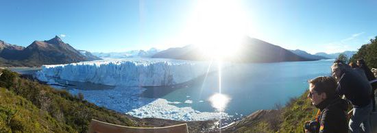 Da wir gestern so ein Glück hatten, stellten wir uns heute auch wieder an die Straße. Wir wechselten am Anfang viermal das Auto und überquerten mal wieder die Grenze. In Argentinien wurden wir dann von zwei Engländern mitgenommen. Stundenlang fuhren wir durch die Einsamkeit. Wir sahen Nandus und sogar Flamingos. Wir hatten richtig Glück. Eigentlich wollten wir nur bis El Calafate mitreisen, aber die beiden wollten zum Perito Moreno Gletscher. Super da wollten wir auch hin. Der Gletscher war einfach nur beeindrucken. So ein riesen Gletscher. Es krachte und knackte so laut. Die Abendsonne schien auf den Gletscher und es war einfach nur zum Staunen. Eigentlich hatten wir schon unser ganzes Gepäck dabei, da die Engländer es sehr eilig hatten, oben trafen wir sie aber wieder. So fuhren sie uns auch wieder zurück bis nach El Calafate und wir übernachteten dort auf dem Campingplatz.