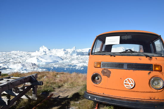 Am nächsten Tag passierte noch etwas krasses. Wir waren ja schon von dem Anblick der Eisberge zuvor überwältigt gewesen, aber über Nacht war die ganze Bucht eine einzige Eiswand geworden. Das passiert hier wohl ab und zu. Es ist aber echt nicht an der Tagesordnung. Der Eisfjord wird zum Meer hin immer flacher und staut das Eis, das vom Gletscher nachkommt. Irgendwann baut sich dann so ein Druck auf, dass die ganzen Eismassen in die Bucht krachen. Viele Bootstouren wurden abgesagt und die Fischer konnten auch nicht rausfahren. Prima wir hatten nur für den folgenden Tag eine Überfahrt zur Diskoinsel gebucht. Die Dame im örtlichen Büro sagte, dass das Schiff fahren würde, es könnte halt alles nur ein bisschen länger dauern. Gut also machten wir eine kleine Wanderung, um die Eismassen zu bestaunen. Später gingen wir noch ins Hong Kong Cafe. Komischerweise kann hier eine Kneipe oder Restaurant Cafe heißen. Ein bisschen verwirrend. Dort gab es tatsächlich vegetarische Gerichte. Yeahhhhh! Sonst konnten wir fast immer nur Pommes oder Pizza bestellen. Besonders Rahan freute sich über einen richtig guten vegetarischen Bürger.