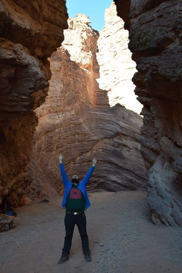 Unser letzter Stopp vor Salta hieß Cafayate. Dieser Ort war so nett und unser Hostel so gemütlich. Gemütlich eher wegen den Bewohner. Keine unserer Unterkünfte besaß nämlich eine Heizung und das bei nächtlichen Minusgraden. Die Leute waren einfach klasse. Fast die Hälfte der Bewohner arbeitete im Hostel und durfte deshalb umsonst nächtigen. Wirklich arbeiten sah man aber kaum jemanden. Abends packten viele ihre Instrumente aus und es wurden argentinische Songs geträllert. Tagsüber besuchten wir das Weinmuseum und schlenderten durch den Ort. Echt interessant, hier gibt es die höchsgelegenen Weingüter der Welt und das auch noch bei diesem Wüstenklima. An unserem Abreisetag unternahm ich eine Wandertour mit Diego. Rahan war froh, dass ich einen anderen Wanderpartner gefunden hatte und er faulenzen konnte. Zunächst verlief die Tour echt schön durch einen Canyon. Man musste ein paar Mal einen Bach überqueren. Doch es wurde immer krasser. Man kletterte die Felswände hinunter und hinauf und irgendwann wollten wir fast aufgeben. Da kam ein Tourguide mit zwei Franzosen um die Ecke und meinte wir wären nur noch 10 Minuten vom Ziel emtfernt. Wir gingen mit. Es waren für mich aber die schrecklichsten Wanderminuten meines Lebens. Meine Schuhe hatten keinen Halt auf den glitschigen Felsen und es ging echt steil runter. Der Tourguide half mir über alle Hindernisse, aber ich fühlte mich so unwohl und freute mich, als es vorbei war.