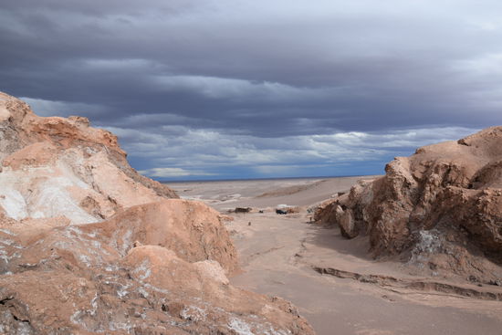 Von Salta aus wollten wir eingentlich mal wieder trampen, aber uns nahm doch tatsächlich keiner mit. Das ist mir ja noch nie passiert. Gut zunächst standen wir an der falschen Stelle, aber auch an der richtigen Stelle hatten wir kein Glück. So gaben wir auf und nahmen den Bus. Diego organisierte uns in der Nähe von Jujuy eine Couchsurferunterkunft. Rahan und ich hatten von dieser Plattform nie Gebrauch gemacht, da ich dachte es ist eher für Leute, die alleine reisen. Doch wir wurden tatsächlich zu dritt aufgenommen. Und das war vielleicht ne krasse Unterkunft. Wir schliefen bei Luis und Pablo. Das Haus lag am See und war so gemütlich eingerichtet. Wir schliefen nicht auf einer Couch, sondern im Gästezimmer. Über uns gabs ein Dachfenster durch das man die Sterne sehen konnte. Der Garten war ein Traum. Wir saßen am See, tranken Mate und genossen den Sonnenuntergang. Abends machten wir es uns auf dem Sofa vor dem Ofen gemütlich. Wir kochten etwas und die Gastgeber bereiteten Creme Brule vor. Es war so nett. Ich find es einfach spitze, dass Leuten einen völlig umsonst aufnehmen. Ich wollte gar nicht mehr weg, aber so langsam rannte uns die Zeit davon. Schließlich wollten wir ja noch Peru und Bolivien sehen. So machten wir nach einer Nacht einen Ausflug nach Purmamarca. Man könnte meinen, dass wir langsam genug von roten Landschaften haetten, aber mich fazinierten diese Wüstenorte total. Später gings wieder zurück nach Jujuy und dort hieß es warten, warten, warten. Erst um drei Uhr nachts ging unser Bus nach San Pedro de Atacama. Ich rollte die Isomatte aus und kuschelte mich in meinem Schlafsack. Doch die Zeit verging so langsam. Endlich konnten wir in den Bus. Ich habe aber leider das Problem, dass ich in Bussen nur sehr schlecht schlafen kann. So kam ich total gerädert an der chilenischen Grenze an. Es hieß nämlich mal wieder, die Grenze zu überqueren. Wie ich das liebe. Das Schlimme war auch noch, dass dieser Übergang über 4000 Meter hoch war. Zunächst merkte ich gar nix. Dann bekam ich totale Kopfschmerzen und mir wurde übel. In diesem Zustand musste ich fast vier Stunden warten. In der Schlange vor dem Gepäckscanner wurde es schlimmer. Diego und Rahan schickten mich zur Krankenstation. Das war mir so peinlich. Dort bekam ich Sauerstoff, aber das half nur kurzzeitig. Der Arzt meinte, ich hätte zu wenig gegessen. Na toll wie soll ich denn in dem Zustand essen. Endlich waren alle Gepäckstücke gescannt und es ging weiter. Nun fuhren wir auf 5000 Meter rauf. Zum Glück fiel ich vor Erschöpfung in einen tiefen Schlaf. In San Pedro de Atacama angekommen gings Rahan auch richtig mies. Wir schleppten uns nur noch ins Hostel. Zum Glück gings Diego gut und er bekochte uns. Ich versuchte etwas zu essen, aber danach musste ich mich übergeben. Zum Glück liegt San Pedro de Atacama nicht so hoch und ich erholte mich schnell wieder. Mir machte nur die Weiterreise etwas Sorgen, da wir ja noch weiter nach Bolivien und Peru wollten. Dort gibt es ja auch jede Menge hoch gelegener Orte. Aber jetzt hieß es erstmal San Pedro genießen. Eigentlich ein richtiger Touriort. Trotzdem gefiel uns allen dieser Ort mitten in der Wüste echt gut. Es gab keine geteerten Straßen, man lief stattdessen auf roten staubigen Wegen. Es gab jede Menge leckere Restaurants und unser Hostel war auch super. Es war so günstig und die Leute waren auch mal wieder sehr lieb. Nur leider gabs mal wieder keine Heizung und so wurde es hier nachts sehr kalt. An einem Tag schneite es sogar. Dafür machten wir es uns am Lagerfeuer gemütlich, sangen und spielten Gitarre. An einem Tag liehen wir drei uns Fahrraeder aus und erkundeten die Wüste. Die Landschaft war mal wieder der Hammer. Man konnte so weit gucken und die dunklen Wolken ließen alles noch dramatischer aussehen. Das Radfahren war aber teilweise sehr anstrengend, da die Wege sehr sandig waren. Dazu ging es noch bergauf und wir hatten Gegenwind. Dafür konnten wir aber zum Schluss eine geteerte Strasse hinuntersausen. Das war ein Spaß.