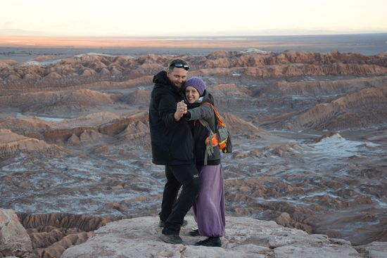 Dann gab es noch einen besonderen Tag zu feiern. Rahan und ich waren tatsächlich schon 15 Jahre zusammen. Wir buchten eine Tour ins Valle de la Luna und bestaunten die Landachaft, ohne uns anstrengen zu müssen. Das war auch mal ganz gemütlich mit dem Touribus. An einem Aussichtspunkt sahen wir den Sonnenuntergang und kurze Zeit später den Mondaufgang. Ich habe noch nie so einen tollen Mondaufgang gesehen. Abends gingen wir lecker essen. Es war richtig schön, mal was zu zweit zu machen, das kam irgendwie in der letzten Zeit etwas zu kurz.
