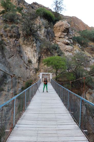 Einen Tag später unternahmen wir eine Wanderung in einen Canyon in der Nähe von Yura. Dazu fuhren wir mit dem Minibus aus der Stadt raus. Wir wanderten los und es war so heiß und trocken in der Mittagssonne. Zum Glück kam bald die Abkühlung und wir liefen in den Canyon. Der Canyon spendete Schatten. Außerdem verlief der Weg oft direkt im Fluss und das lauwarme Flusswasser tat so gut. Ich war so froh über unsere Trekkingsandalen. Ich hatte so einen Spaß, im Fluss zu laufen. Diego lief leider barfuß und das war wohl etwas schmerzhaft. Das letzte Stück lief ich also mit Rahan allein. Dort konnten wir einen Wasserfall bewundern.