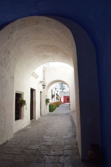 Ziemlich spät erreichten wir die Stadt und unsere Unterkunft. Es war echt prima, die ganze Unterkunft nur für uns zu haben. Die kommenden Tage schlenderten wir durch die wirklich hübsche Stadt. Es gab viele alte Gebäude zu besichtigen und der Plaza war auch toll. Diego kostete Alpakafleisch und Rahan und ich Kartoffeln und Mais. Das hört sich erstmal unspektakulär an, aber in Peru gibt es so viele verschiedene Mais- und Kartoffelsorten. Besonders die Maiskolben mit den riesigen Körnern fand ich köstlich. An einem anderen Tag besichigten wir das Kloster. Ich hatte mir dabei gar nicht groß was gedacht, aber es war so ein schöner Ausflug. Das Gelände war wirklich groß und die verschiedenen Farben waren der Hammer. Dazu noch das Sonnenlicht. Die Sonne schien hier wirklich dauernd. Es gab kein Wölkechen am Himmel und wir genossen das Wetter.