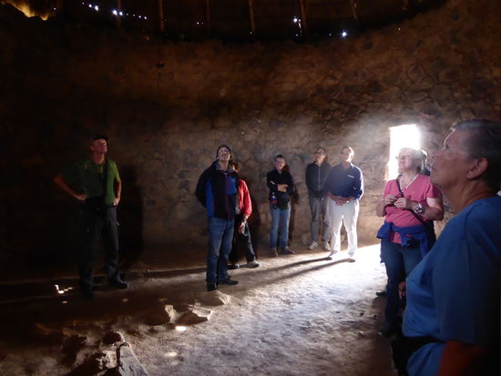 Unser nächster Halt gilt der Inkastätte Raqui. Hier stand einst ein grosser Tempel. Es müssen runde Säulen gewesen sein, die das Dach stüzten. Cesar erzählt, dass dies die einzige Stelle mit runden Säulen sei, die man aus der Inka-Epoche gefunden habe. Ausserdem gab es viele Wohnhäuser für Angestellte und Beamte und über 100 runden Lagerhäusern. Zwar sind die meisten nur noch ein Haufen Steine, aber die Ausmasse sind erkennbar und sehr eindrücklich.