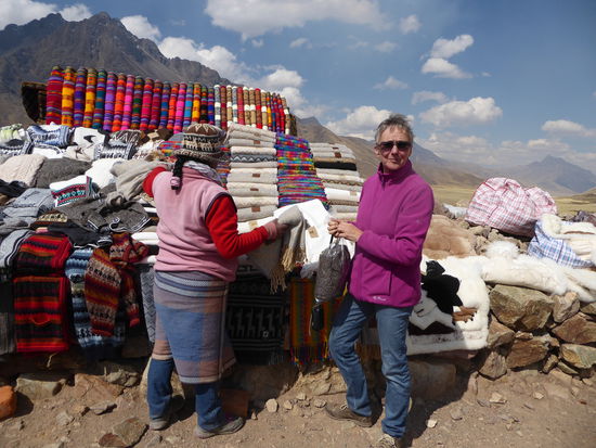 Hier wie überall stehen natürlich die unvermeidlichen Verkaufsstände, die warme Sachen wie Pullover, Mützen und Handschuhe aus der weichen Alpakawolle anbieten.