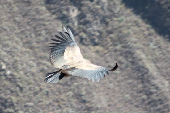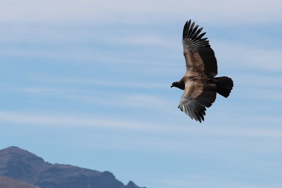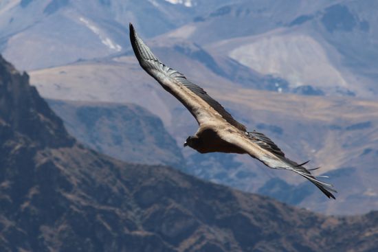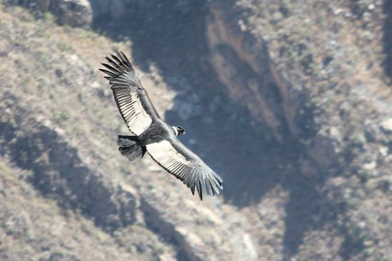Der Condor ist ein Aasgeier und in den gesamten Anden verbreitet, aber an kaum einem Ort kann er so gut beobachtet werden wie hier, hoch über der Colca-Schlucht.