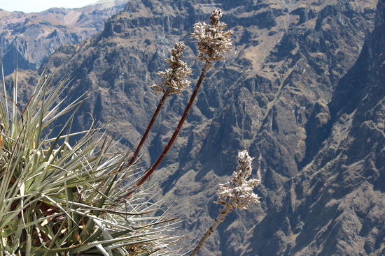 Wir fahren ins Colca-Tal. Die Aussichten sind grandios. Überall ist das Gelände terrassiert. Schon die Inkas legten hier ihre typischen Terrassen an und bewässerten auf raffinierte Art alle kleinen Äcker.
