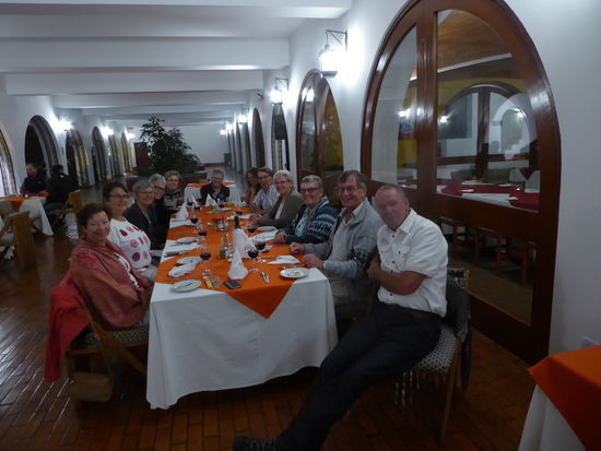 Später treffen wir uns wieder an der Bar. PiscoSour und Bier ist angesagt. Und dann geniessen wir gemeinsam ein feines Nachtessen in den Lauben des Hotels.