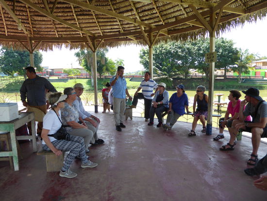 In Nauta besuchen wir das Sapi Sapi, einen kleinen Teich, wo das Dorf Schildkröten und Paiches hält. Paiche ist der grösste Süsswasserfisch. Er kann bis zu 3-4 Meter lang werden und ist ein hervorragender Speisefisch. Gierig schnappen die Tiere nach dem Brot das wir ihnen ins Wasser werfen. Woher denn der Name Sapi Sapi kommt möchten wir wissen, und ein Mann, der bei den Verkäufern, die ihre Handarbeiten anbieten steht, erzählt es uns. Früher war der Teich noch eine richtige Lagune, mit Bäumen rundum. Tagsüber trafen sich hier die Frauen zum Wäsche waschen, Geschichten erzählen, die letzten Dorfneuigkeiten zu erfahren. Nachts aber trafen sich rund um die Lagune die Liebespaare und machten Sapi Sapi, was in der Quetschua-Sprache ‚Liebe machen‘ bedeutet.