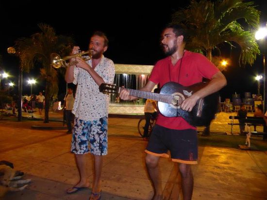 Nachdem wir den ganzen (kurzen) Bulevard einmal auf und ab gelaufen sind, kehren wir in einem der Bistros ein und bestellen einen Pisco Sour. Stossen auf unsere Ankunft in Iquitos an. Aus der nahen Karaokebar tönt Musik und auf der Strasse geben zwei Strassenmusikanten aus Chile ein Konzert. Das alles ist Iquitos.